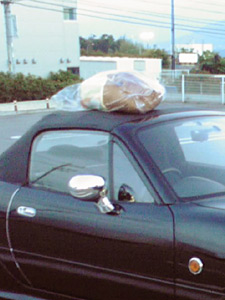 嫁の狭いトランクの中は大量の白菜と大根とカピバラさんでみつしりでした。