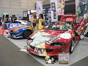 手前から西又シボレー・シャナS13の痛車とスピードウェイブース。