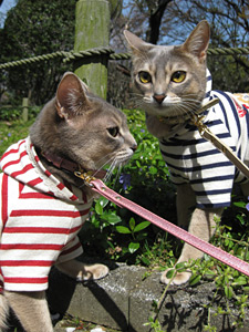 お散歩に来ていたアビシニアン姉妹。麗しすぎる。(アビってこういう色もいるんすね)