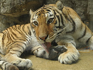 飼育員のおじさまいわく「猫科は濡れるのを嫌うけど、トラだけは水浴び大好きなんだー」