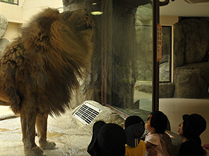 画像奥のレストランでは、食事をしながら動物が見れます。
